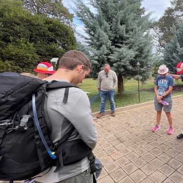 With the sun casting a soft glow over the Soldiers Chapel at Kapooka, the inaugural ANZAC Way pilgrimage began with reverence, anticipation, and quiet excitement. We gathered in solemn reflection, honouring the legacy of service and sacrifice before setting out on their journey. The Chaplains at Kapooka helped in sending us off on our journey.