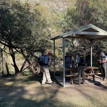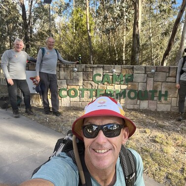 The climb into Camp Cottermouth Scout Camp was rewarded by camp cook supremo: Jeanette’s home-cooked dinner, marshmallows by the fire, and stories shared under the stars. Some of us slept on concrete. Cam and Mike pitched tents. It was the kind of night only a shared journey can bring.