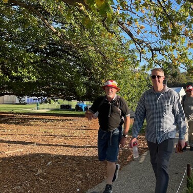 The walk took us along the riverside at Wagga. We paused for our first break at Victory Memorial Gardens—an oasis of memory and community spirit. It was an opportunity to remember those who had served and had given the ultimate sacrifice serving Australia. The atmosphere was thoughtful and warm, with spontaneous conversations and shared reflections among walkers and supporters alike.