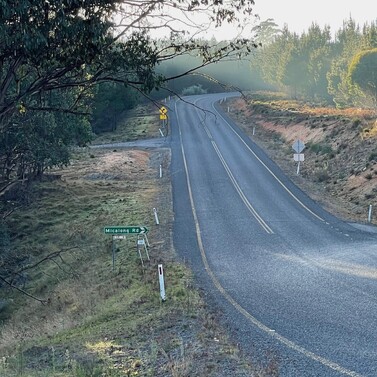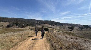 Today’s journey took us along the verge of the Snowy Mountains Highway, with sweeping views and endless sky accompanying us for the first half of the 21.6km walk. After 11km of steady road walking, we turned onto quiet dirt roads that gently led us toward Adelong Falls, and finally, into the welcoming arms of Adelong township.