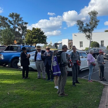 After a restful night at RAAF Base Wagga, Day 2 we pilgrims hit the road again—this time under a clear sky, the kind that invites deep reflection and wide conversations. The journey to Ladysmith took us through rolling pastoral land and along roads that felt as timeless as the stories we carry. We passed old road signs, grazing cattle, and the occasional friendly wave from vehicles driving by, and locals who paused to learn more about the pilgrimage.